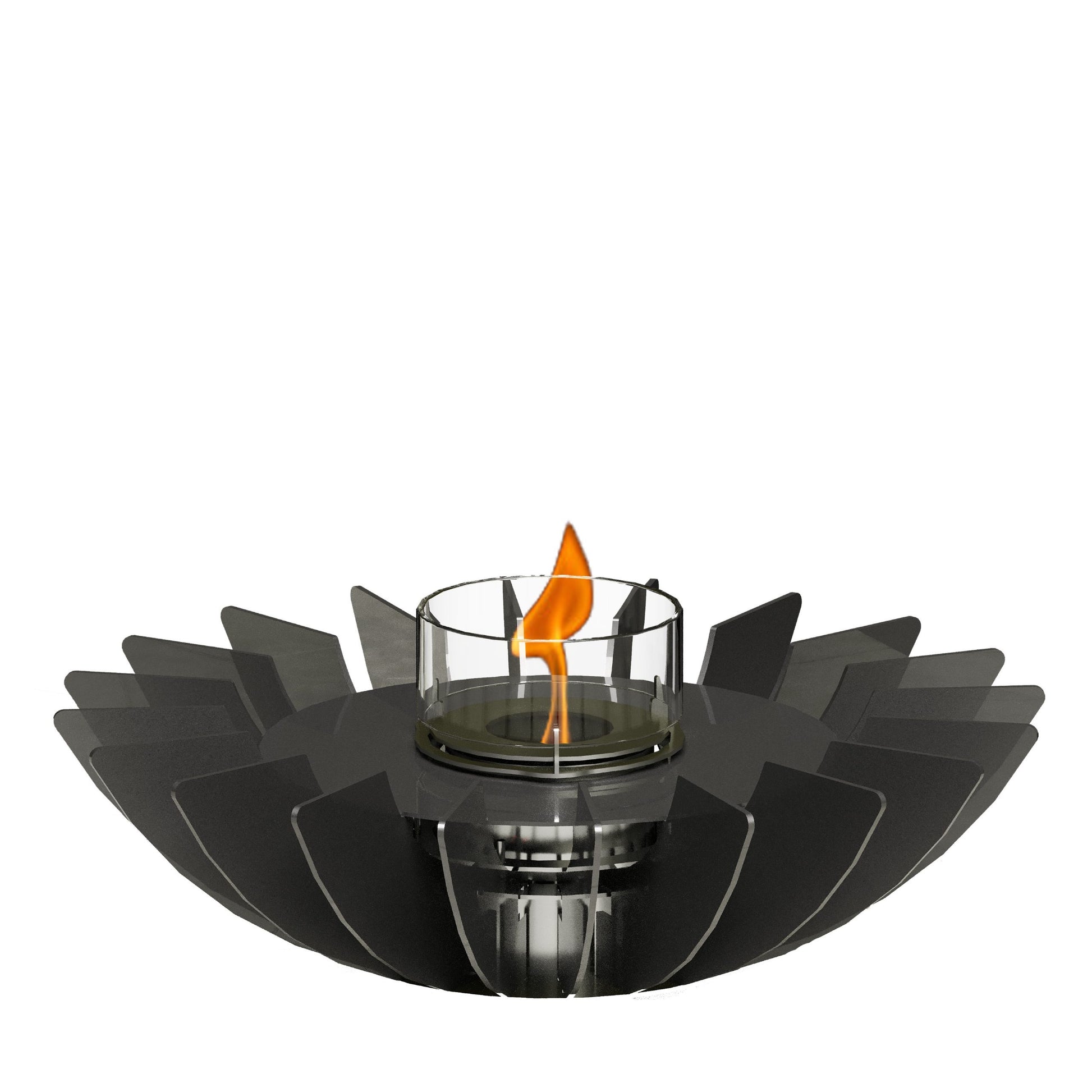 The GlammFire Cosmo tabletop fire is a refined decorative fireplace designed to elevate indoor spaces with soft flame and contemporary character. Inspired by organic forms, its circular, petal-like steel structure surrounds a central flame, creating a striking visual centerpiece whether placed on a dining table, coffee table, or sideboard.