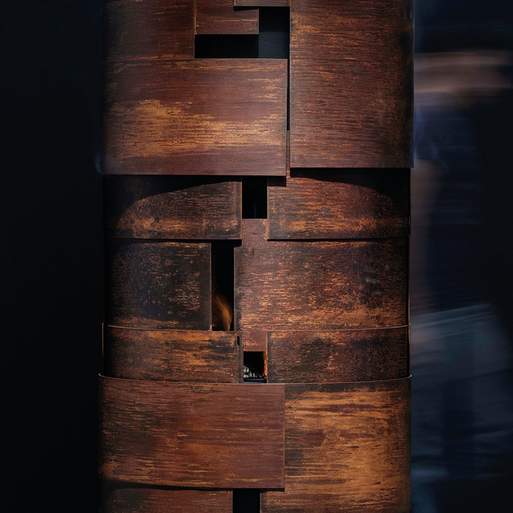 The GlammFire Intermezzo is a striking outdoor barbecue that blends industrial-inspired design with multifunctional performance. Standing over two metres tall, its vertical smokestack form vents smoke upward, helping keep the cooking area comfortable and smoke-free for guests.